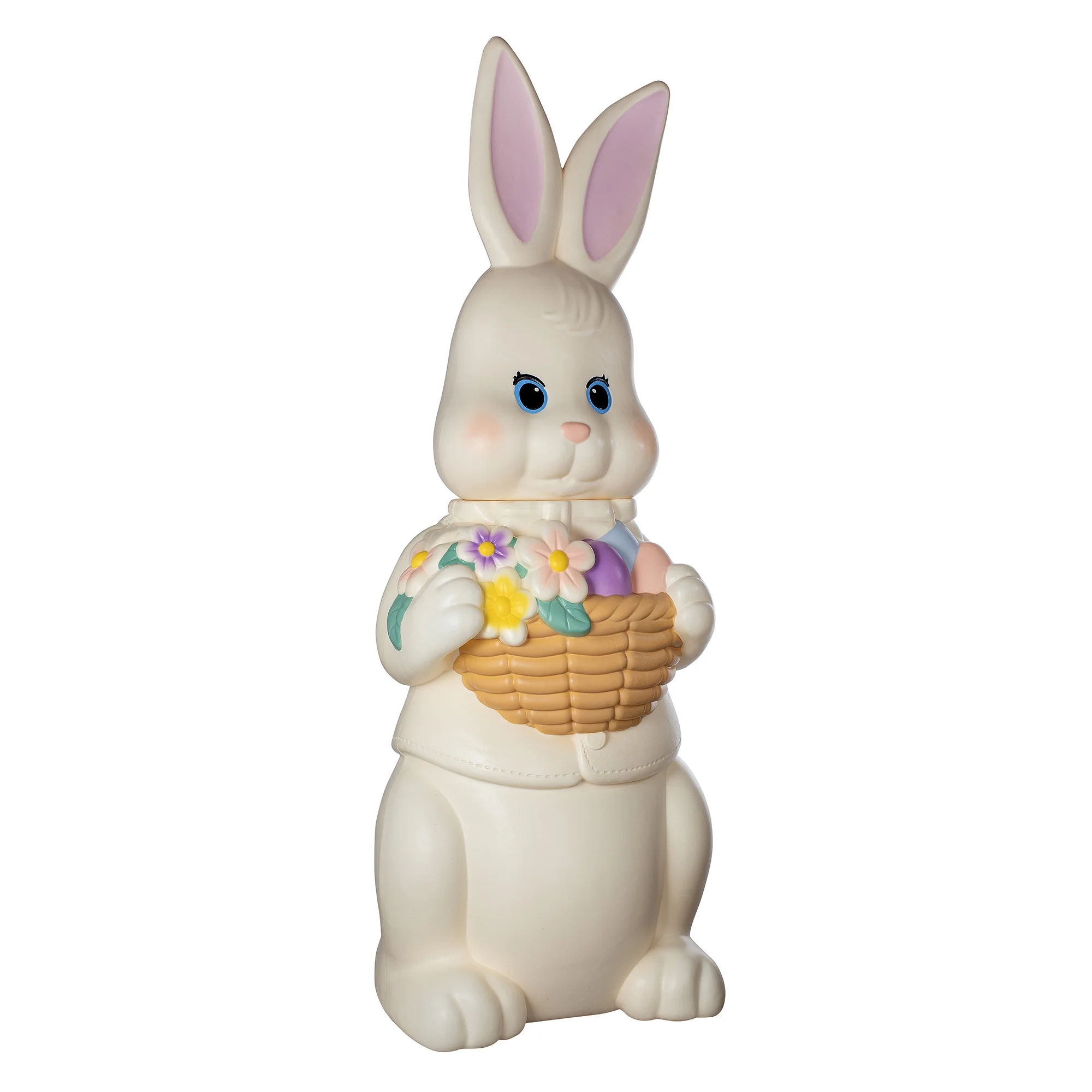 Crafted in classic smooth white blow mold style, this giant bunny blends retro charm with modern seasonal decorating trends.